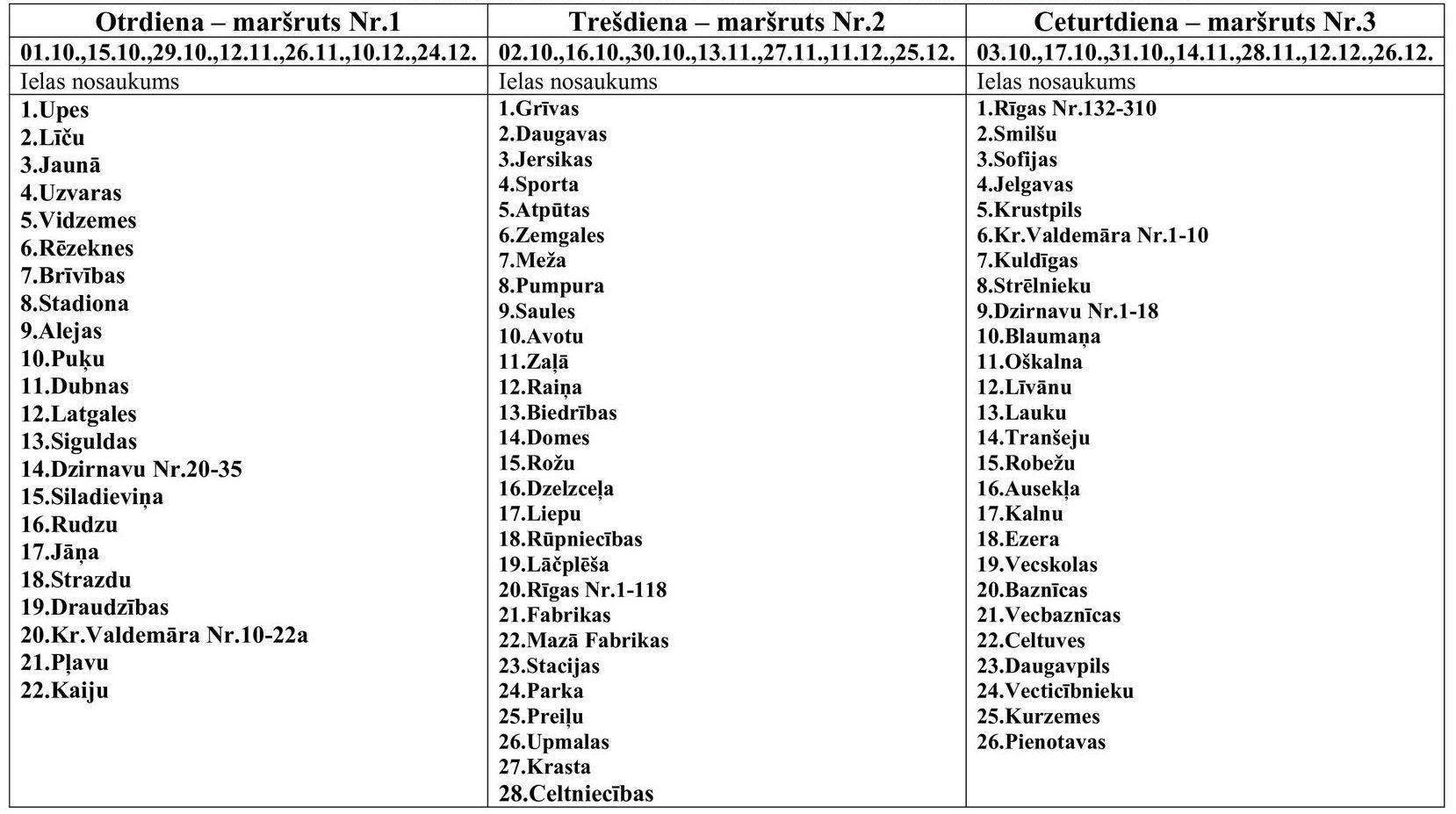 Atkritumu izvešanas grafiks 4.ceturksnī